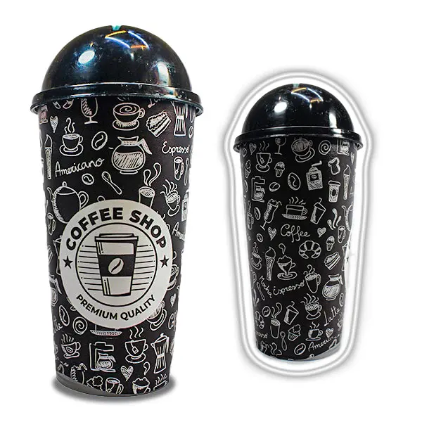 لیوان اسموتی نی دار | جنس بدنه: پلاستیک فشرده | طرح : کافی |