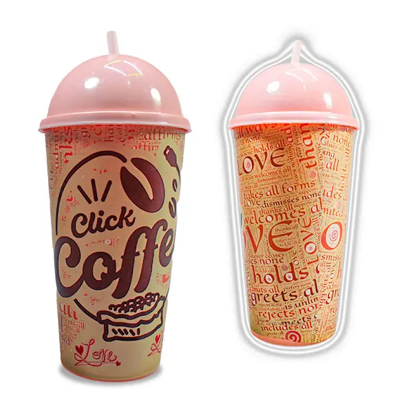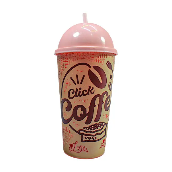 لیوان اسموتی نی دار جنس بدنه: پلاستیک فشرده طرح : کافی