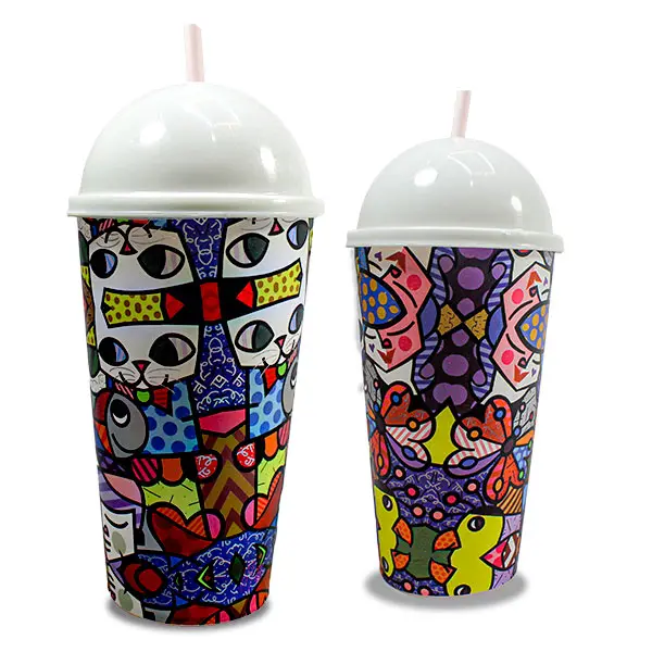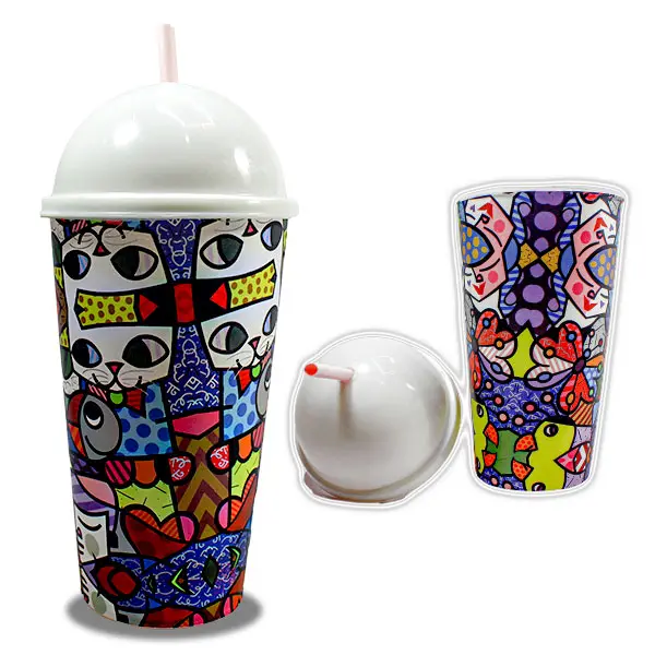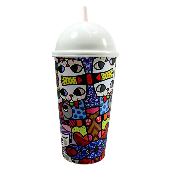 لیوان اسموتی نی دار جنس بدنه: پلاستیک فشرده طرح : چشم گربه