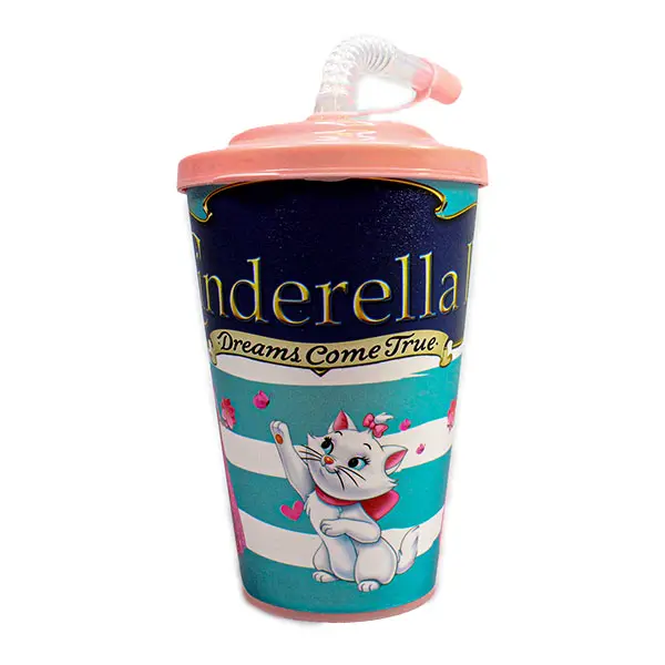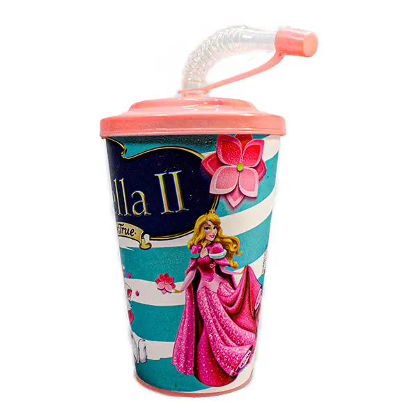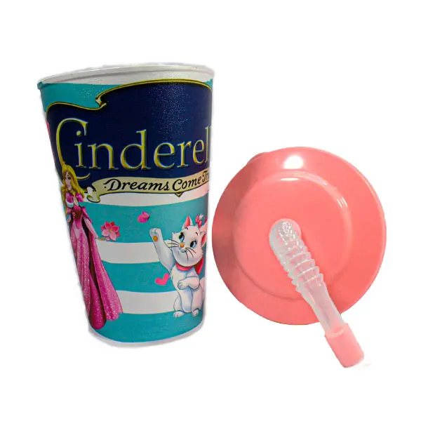 لیوان کافی نی دار فنری | جنس بدنه: پلاستیک فشرده | طرح : دختر و گربه |